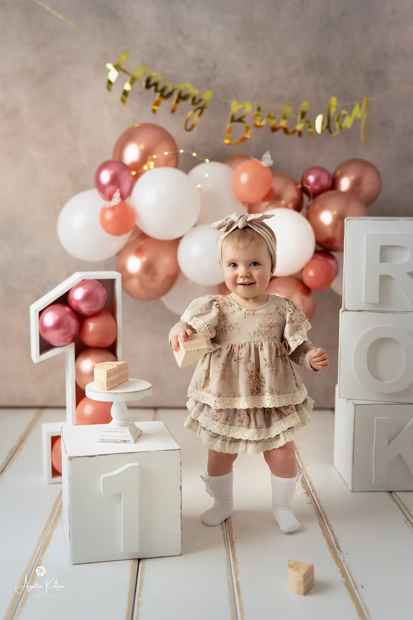 Scenka z balonami i możliwość smash-cake (tort we własnym zakresie)